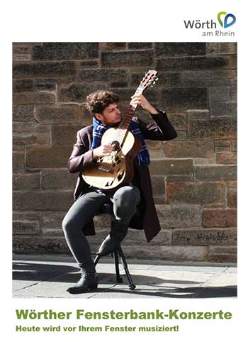 Am Freitag, den 17.04.2020 um 18 Uhr gaben Uli Kofler und Reiner Möhringer ein Fensterbank-Konzert am Brunnen vor dem Rathaus in Büchelberg. Diese Aktion der Stadt Wörth im Zeichen von "Corona" fand in allen Ortsteilen statt.