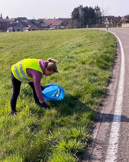 achtlos weggeworfener Müll in der Landschaft aufgesammelt und fachgerecht entsorgt wird.