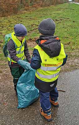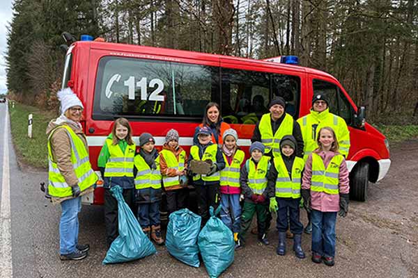 Besonders die Kinder waren engagiert und mit Feuereifer bei der Sache undzeigten sich entrüstet und schockiert, was Erwachsene so alles wegwerfen. Weite Wege mussten zurückgelegt werden, deshalb holte die Feuerwehr die Kinder an den Standpunkten ab und brachte sie mit dem Mannschaftsbus zum Imbiss ins Feuerwehrhaus. Nach vielen gefüllten Müllsäcken und getaner Arbeit gab es zur Stärkung im Feuerwehrhaus Getränke und Bratwurst im Weck.