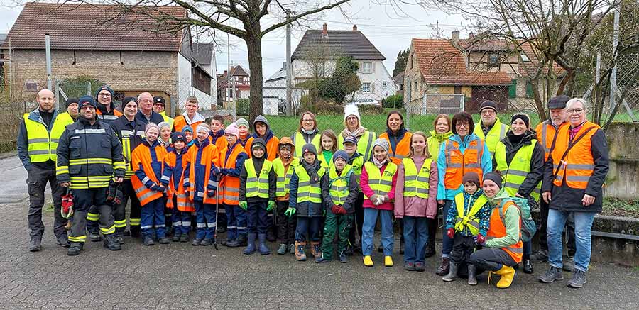 Die Feuerwehr Büchelberg war mit den Löschbienen und der Jugendfeuerwehr in einem großen Trupp gekommen. Zusammen mit Ihren Betreuern, Eltern, Vereinsvertretern und engagierten Bürgerinnen und Bürgern machte man sich gemeinsam an die Arbeit Natur und Umwelt von Müll und Abfall zu befreien.
